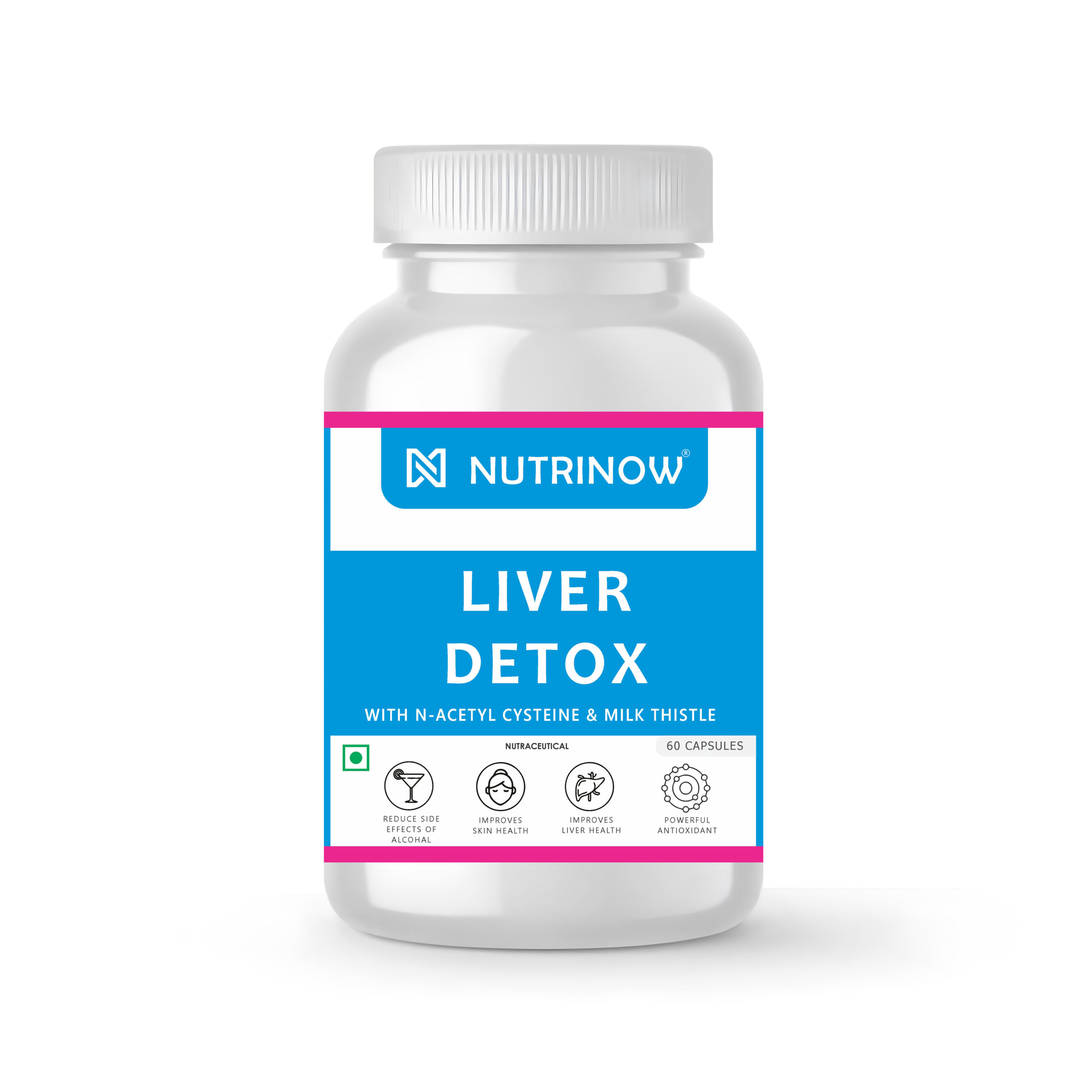 Nutrinow Liver Detox Capsules | NAC (N-Acetyl Cysteine) + Milk Thistle Extract | Liver Cleanse & Detox Support | Antioxidant & Skin Health Support | 60 Veg Capsules
